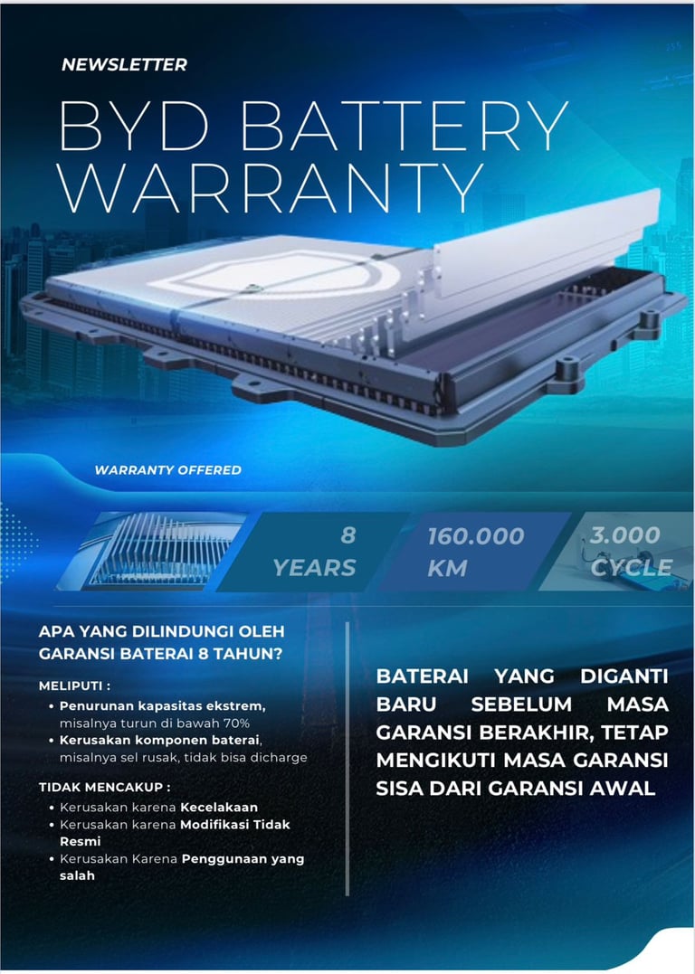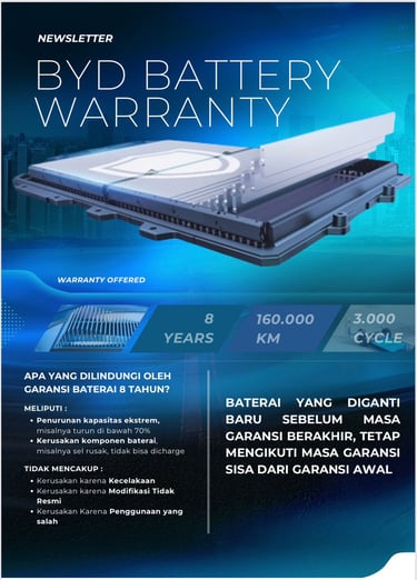 ▪ Garansi Baterai 8 Tahun / 160.000Km ( tidak menggugurkan garansi jika di jual ke tangan kedua sampai seterusnya )