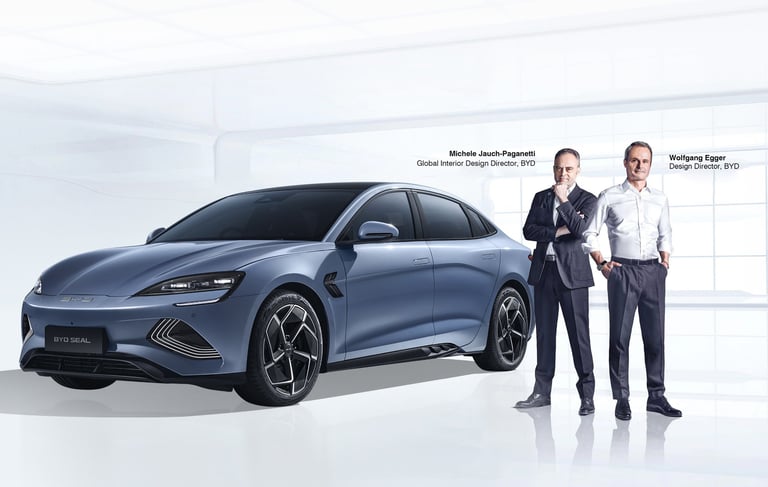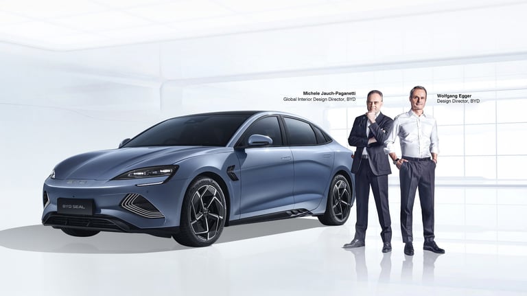 Dipimpin oleh Kepala Desainer Otomotif Wolfgang Egger, tim desain kelas dunia mengintegrasikan inovasi dengan kualitas dan keandalan dalam kreasi otomotif mereka. Lebih dari 200 desainer dari lebih dari 10 negara termasuk Italia, Spanyol, Swiss, dan Jerman, desain BYD dieksekusi secara bersamaan di berbagai lokasi di seluruh dunia.