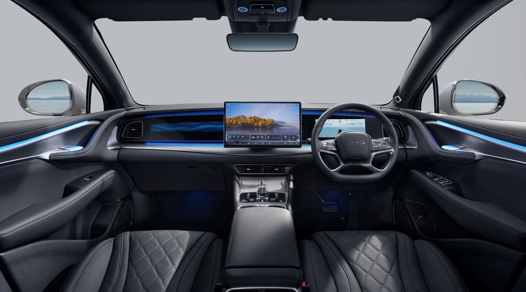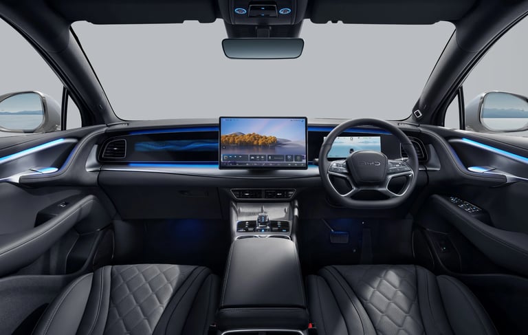Interior BYD SEALION 7 dirancang dengan sentuhan dinamis, keseimbangan sempurna, dan ruang lapang, menciptakan pengalaman berkendara yang menyatu dan imersif.